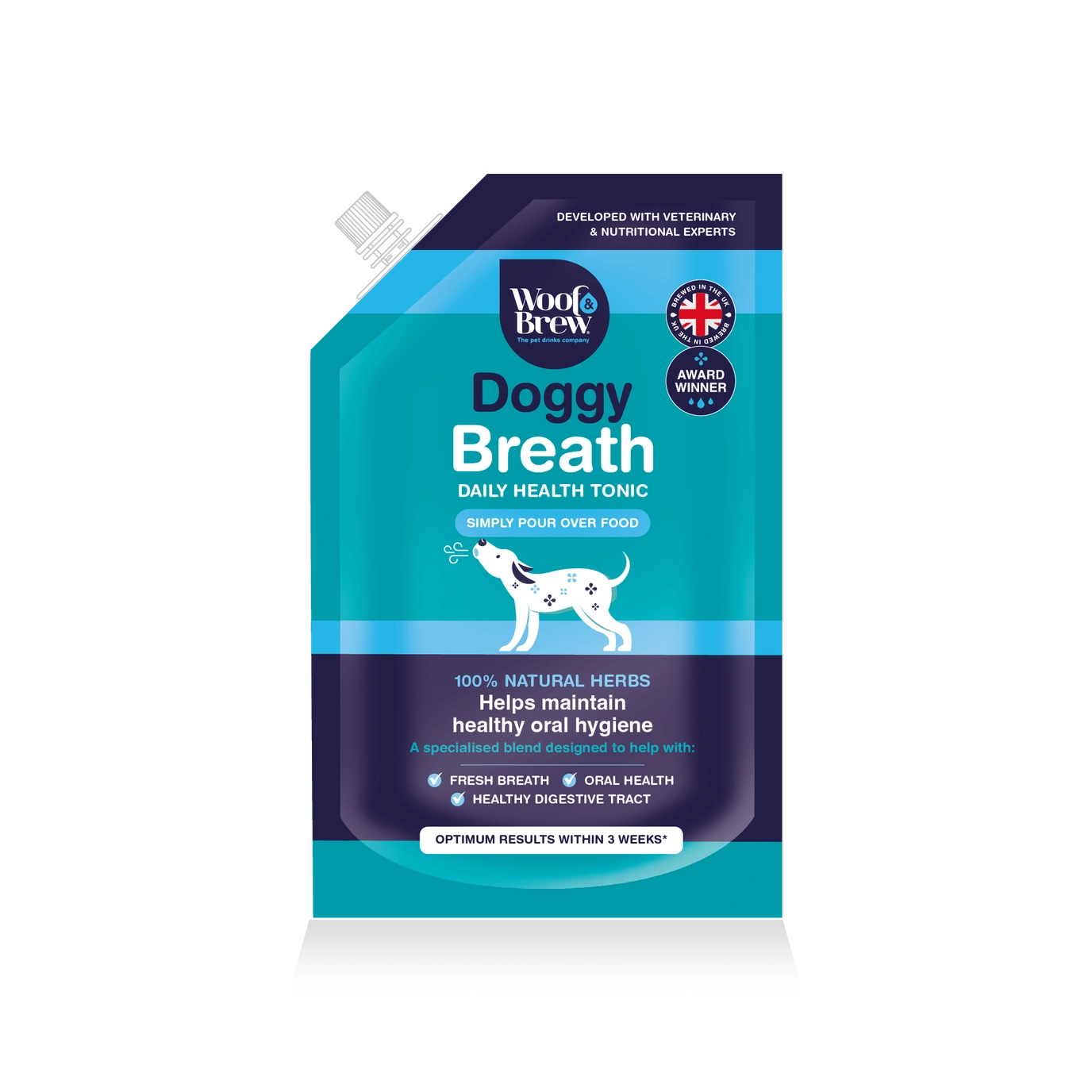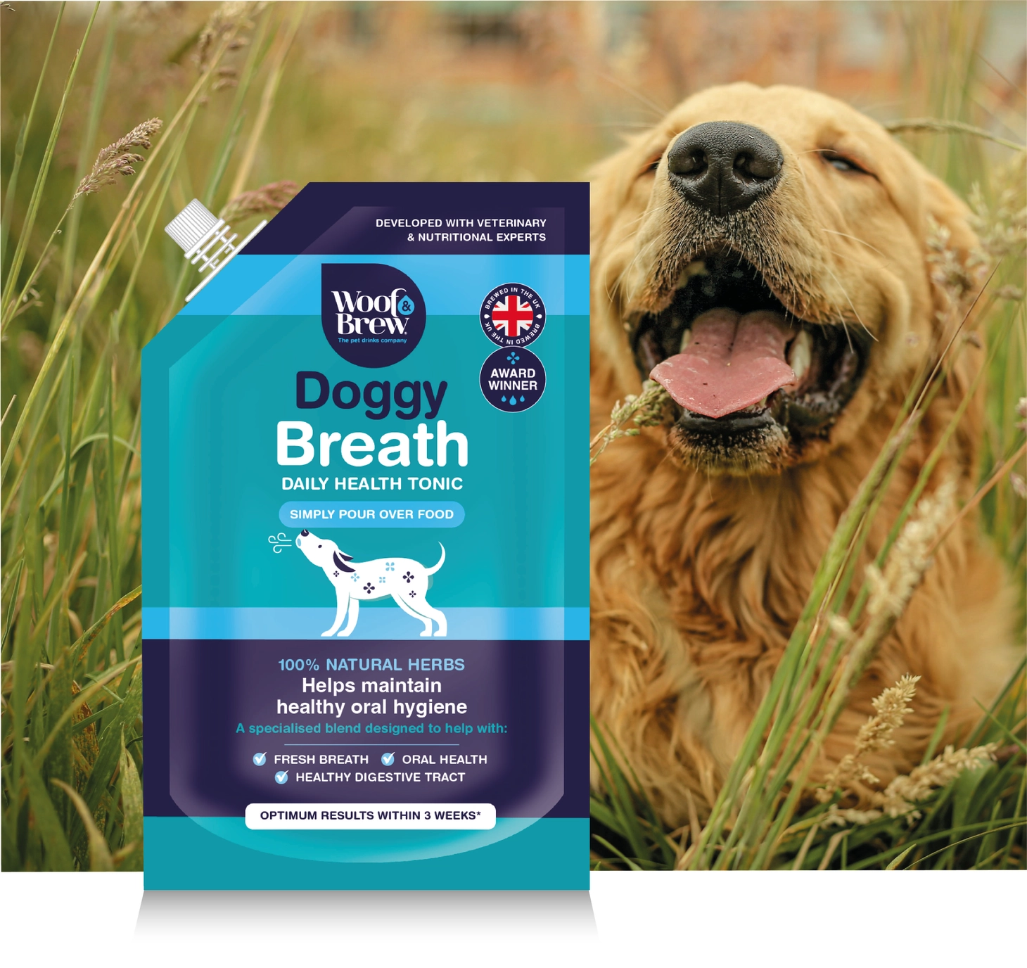 Aidez à garder l’haleine de votre chien fraîche avec Doggy Breath Tonic.